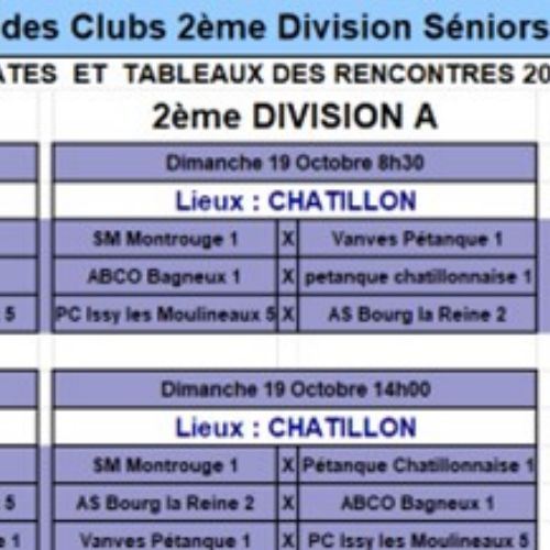 Vanves (François, Pascal, Michel, Bruno, Régis et Nathalie) a rencontré ABCO, le 2 novembre après-midi à Levallois. Vanves a perdu 8 à 28 (1 TàT et 1 triplette gagnés). Vanves descend en D3.